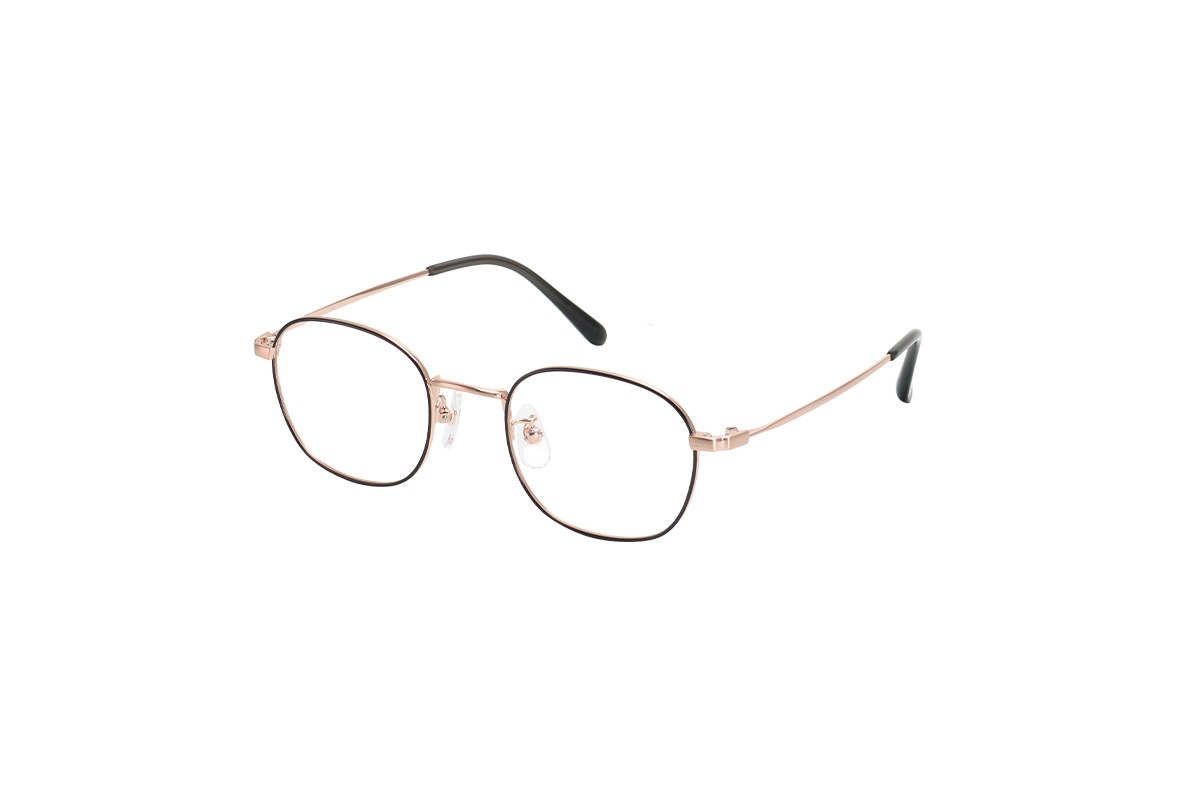 定番のメタル。優しい印象の丸みのスクエアフロント。テンプルには弾性力に優れ安全性の高い超弾性合金を使用しています。
