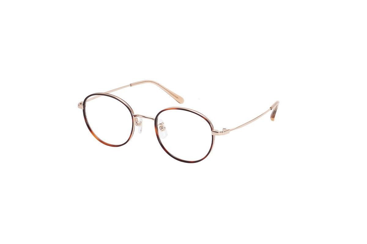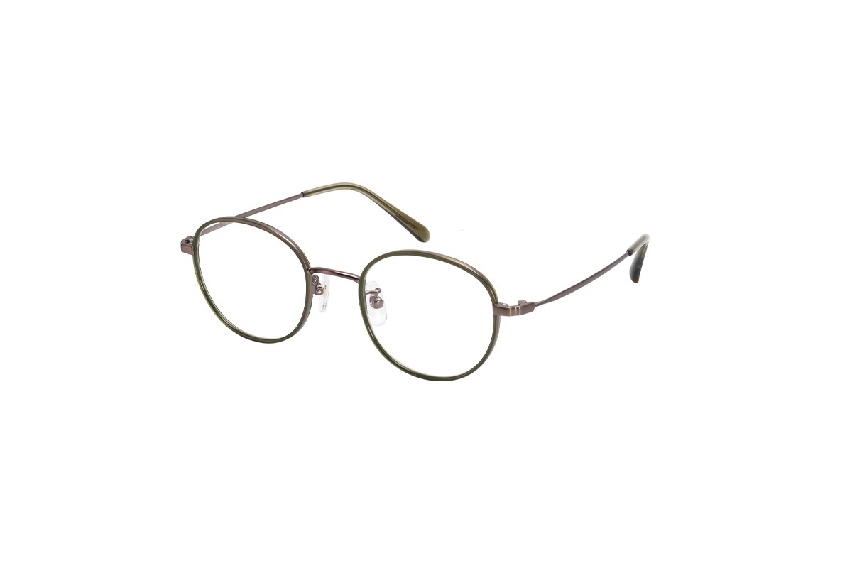 クラシカルなラウンドタイプ。フロントとテンプルのカラーの組み合わせで明るい印象に。弾性のあるテンプルで安全性も高いフレームです。