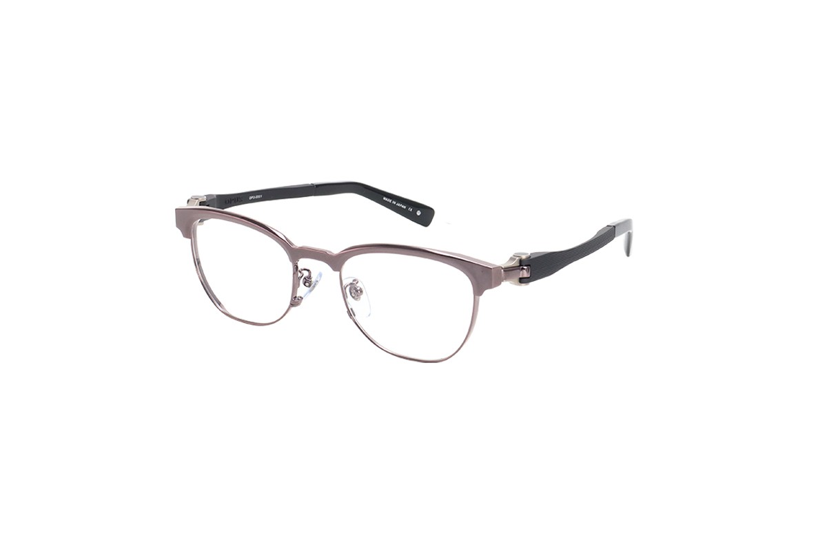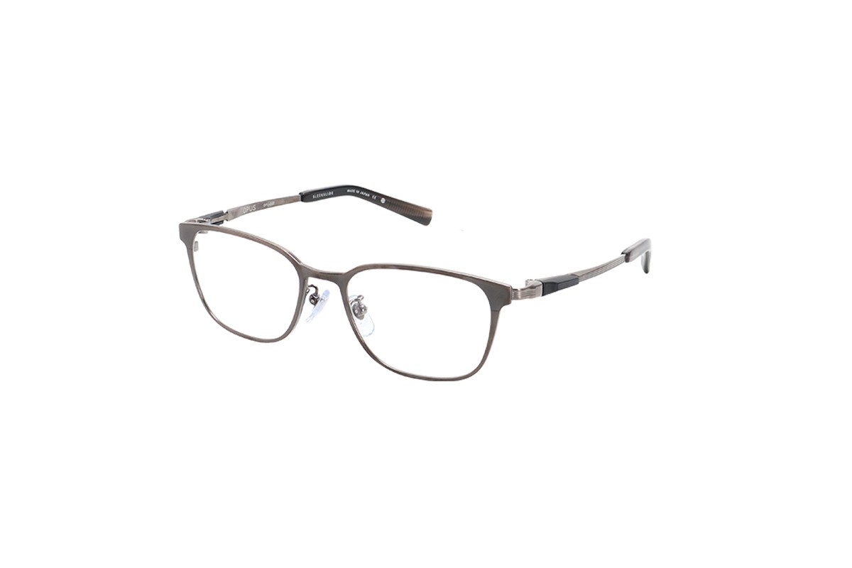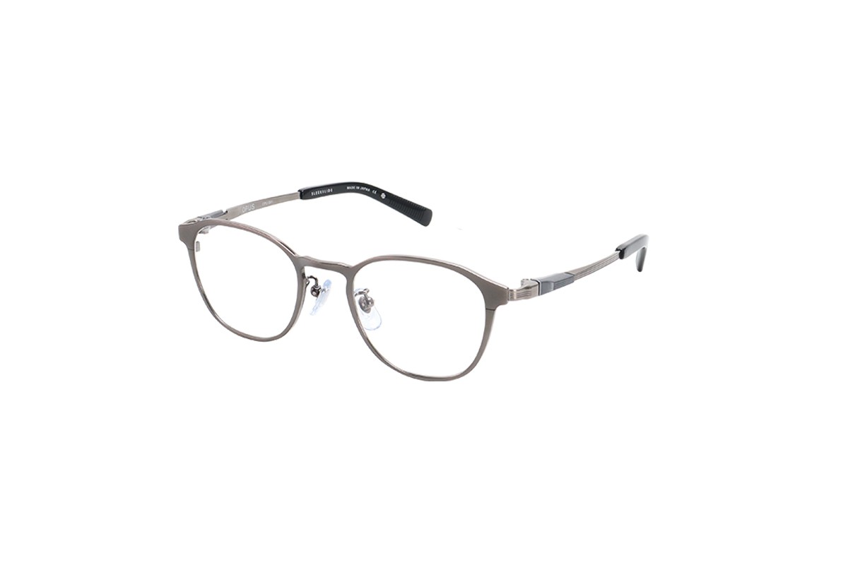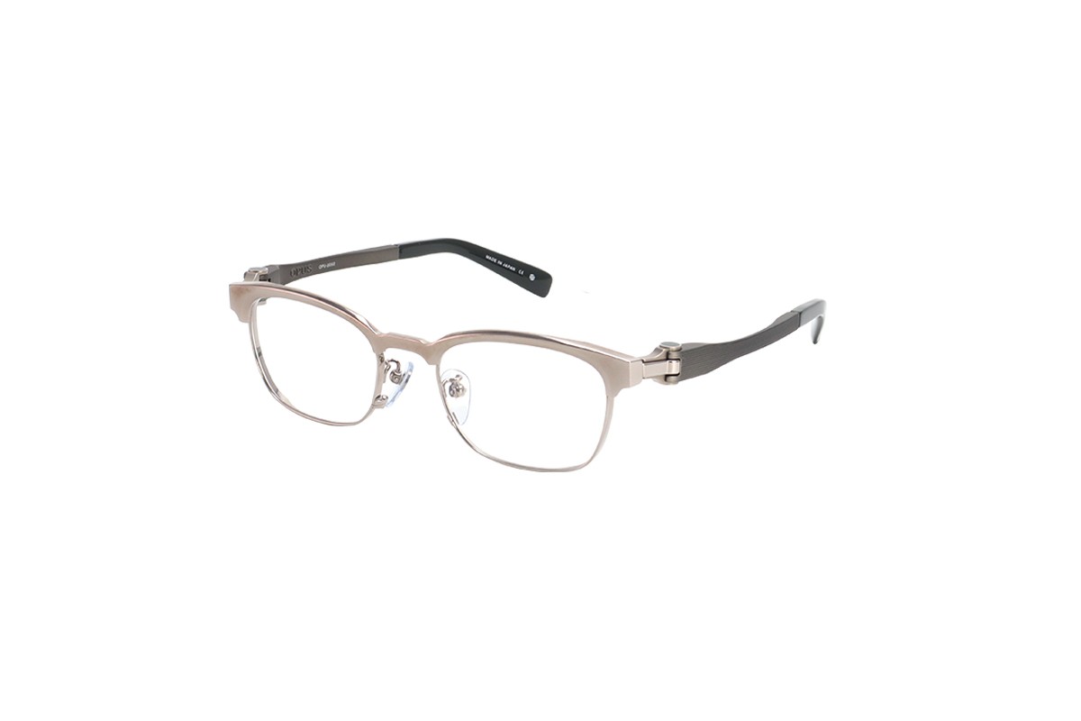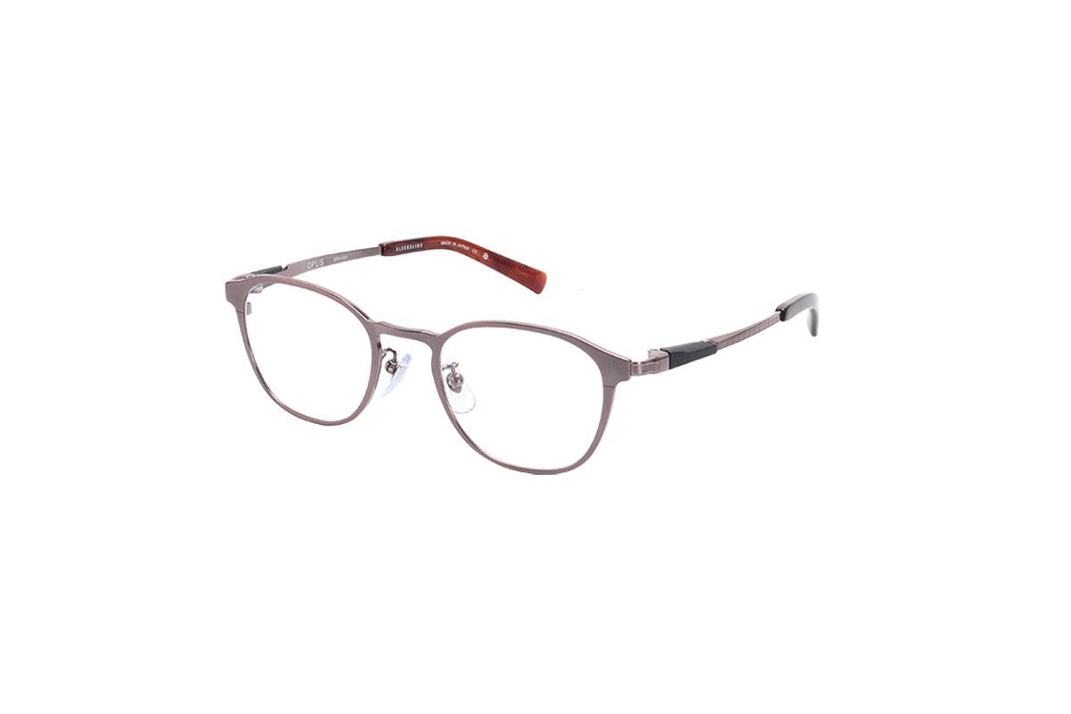 フロントは細身のカールトンタイプとなっており、オーパスの機構を活かすための最低限の寸法以外をそぎ落としました。また2色メッキを施しシンプルなデザインの中にも個性を際立たせています。テンプルは抜きを施すことでより軽くやわらかい掛け心地となっています。軽さを重視したシリーズでも最軽量のモデルです。