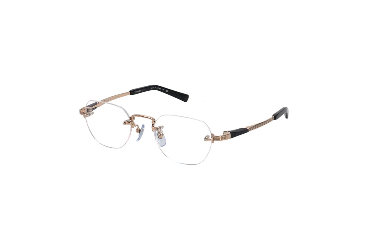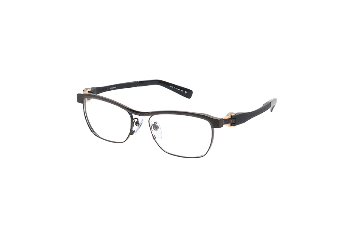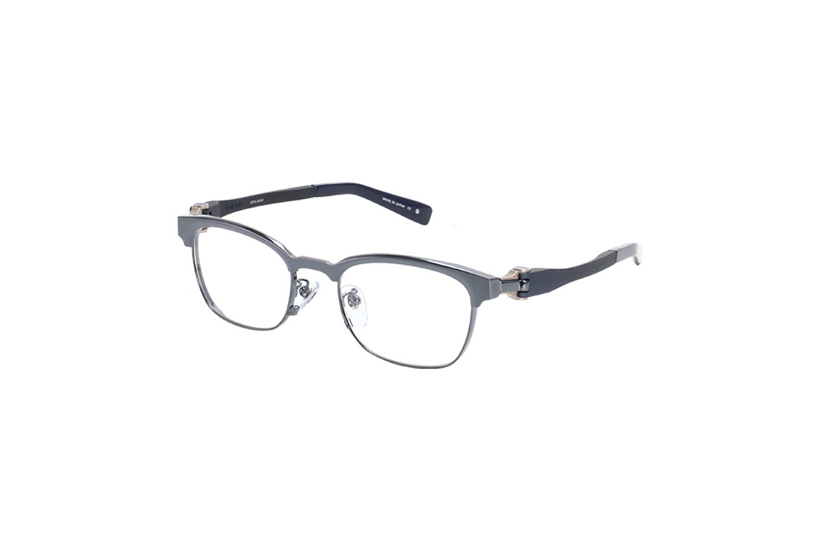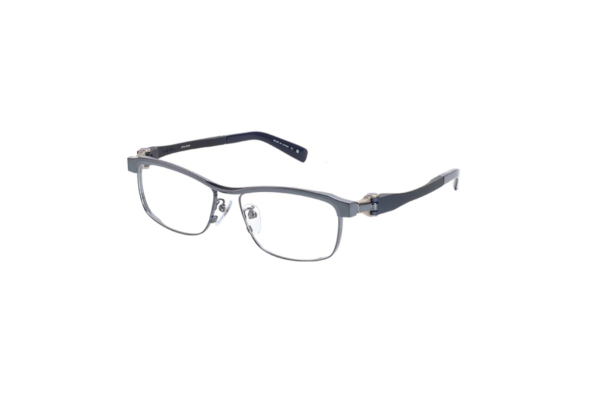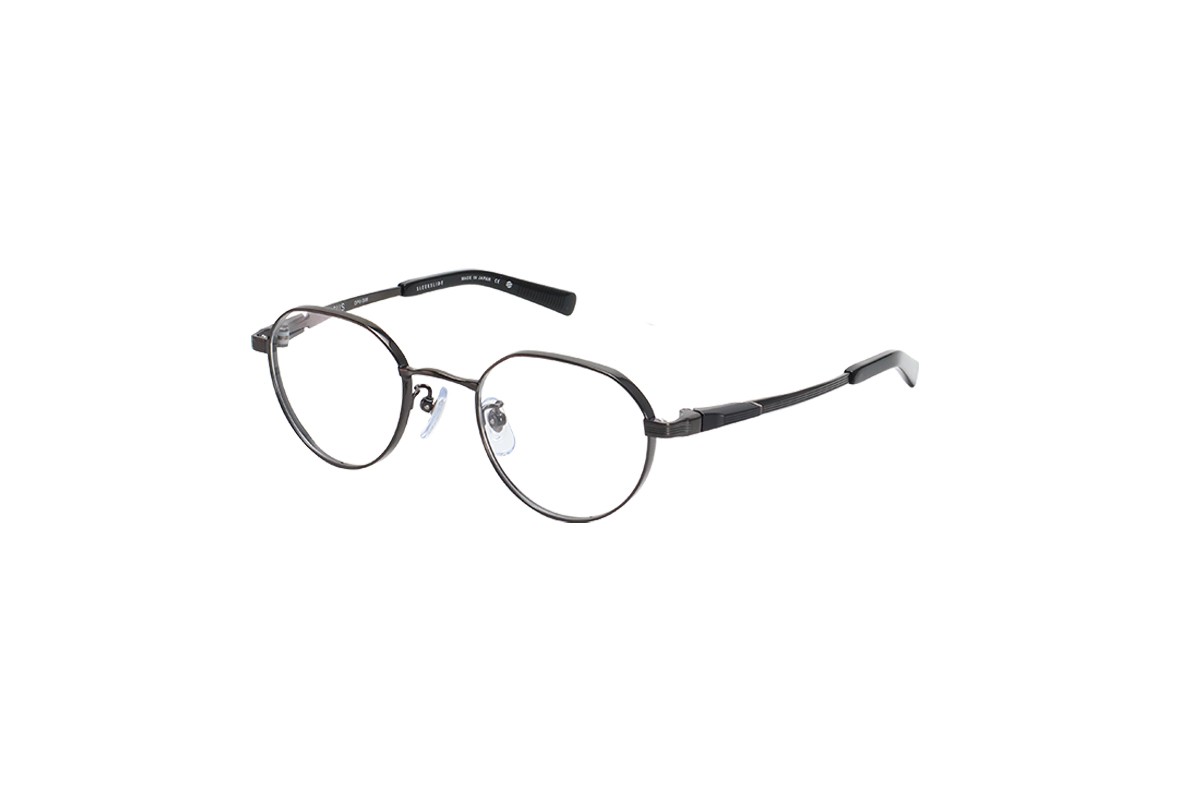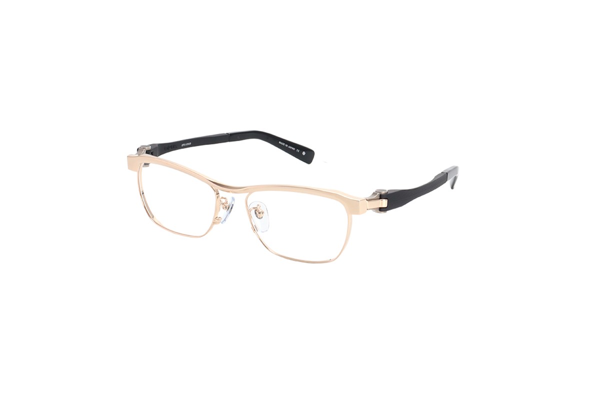 フロントは細身のカールトンタイプとなっており、オーパスの機構を活かすための最低限の寸法以外をそぎ落としました。また2色メッキを施しシンプルなデザインの中にも個性を際立たせています。テンプルは抜きを施すことでより軽くやわらかい掛け心地となっています。軽さを重視したシリーズでも最軽量のモデルです。