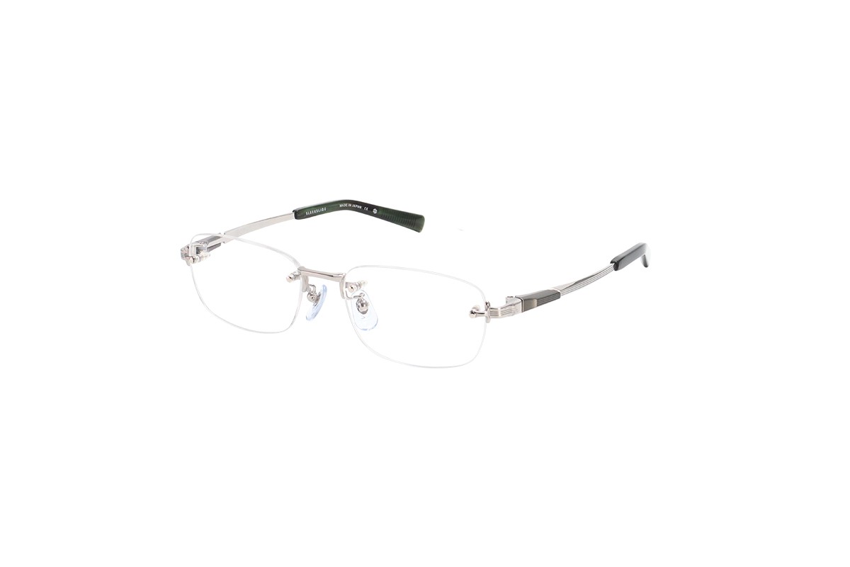 スライドばねボックス部分に軽量で耐衝撃性に強いPPSU樹脂を使用し、これまでにない見た目と装用感を実現。フロントには強度リムを使用。玉型は上品な印象のクラウンパントタイプ。