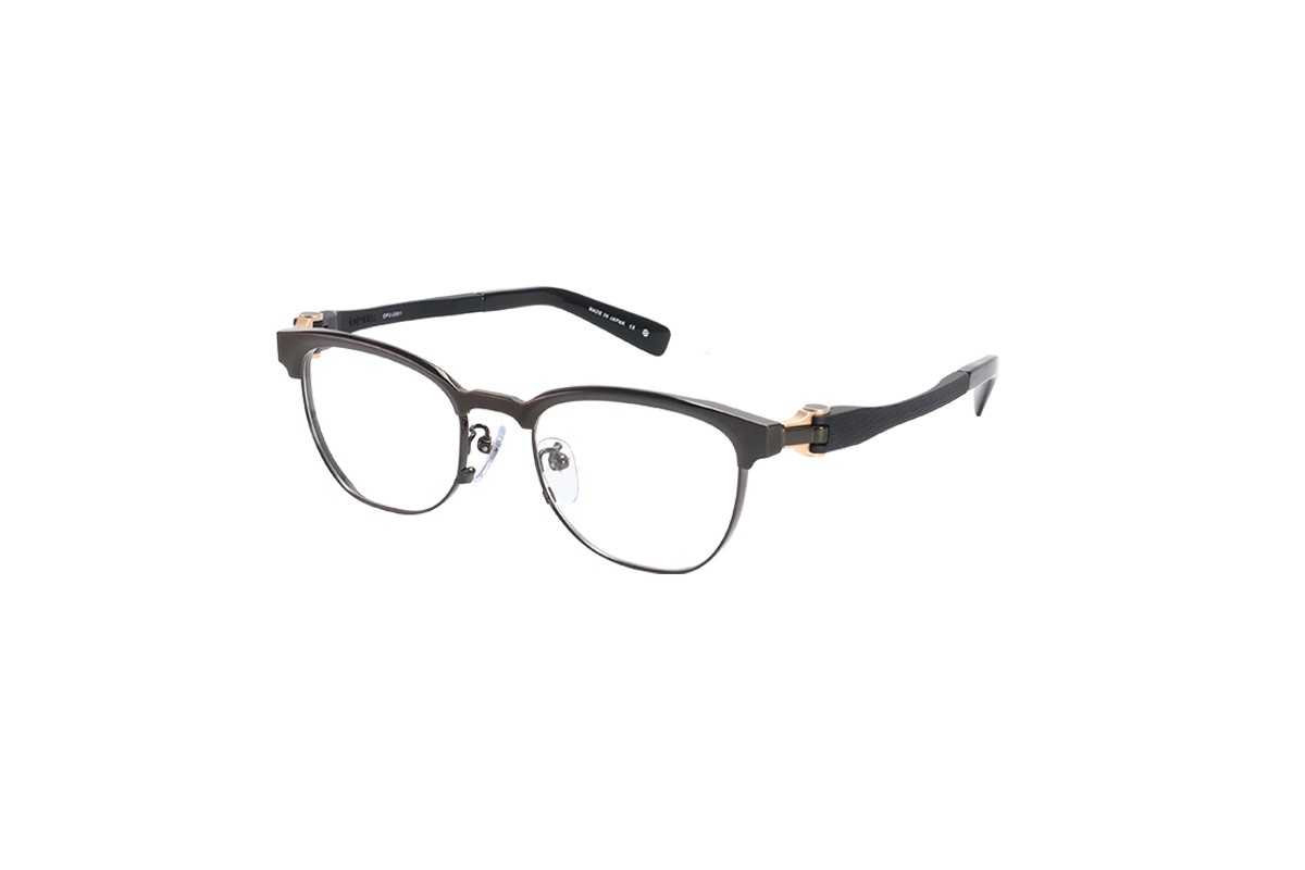 ラウンドヒンジ機構の新たな可能性を秘めた、今までのOPUSにないデザインになっています。ラウンドヒンジの使い方を変えることでよりコンパクトな機構に感じるようにしました。フロントのブローバーからテンプルにかけて流れるような一体感で重厚感のあるデザインになっています。